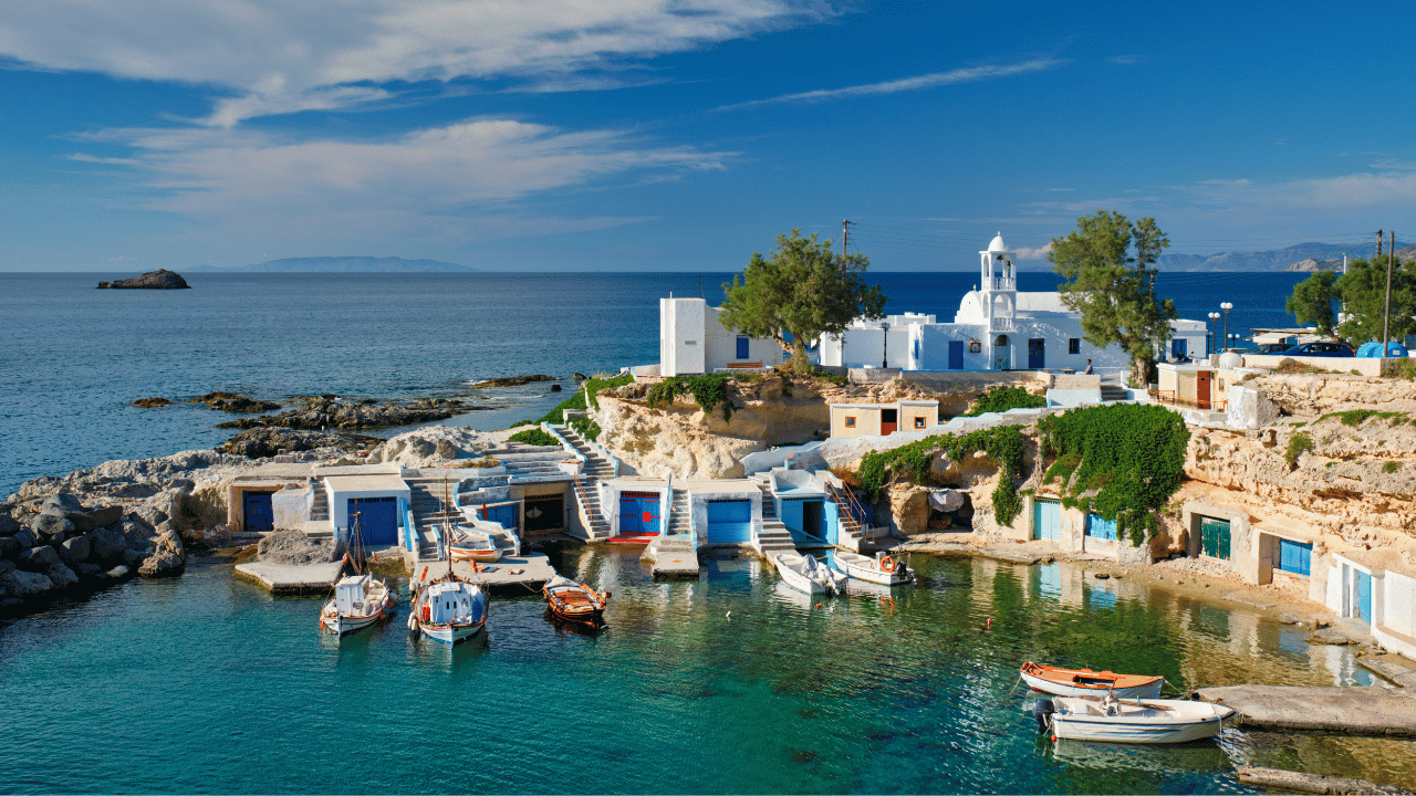 Volcanic Milos stuns its dramatic landscapes, colorful rock formations, and hidden coves. Explore lunal-like Sarakiniko, kayak to secluded Kleftiko with its sea caves, or go scuba diving to discover shipwrecks. Don’t miss the charming capital Plaka, a labyrinth of whitewashed houses.